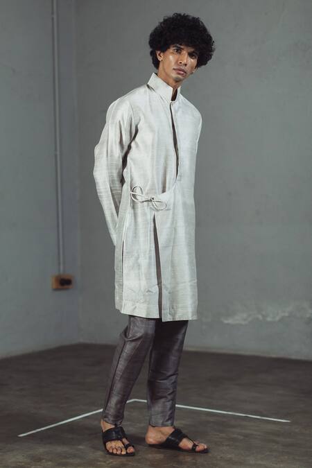 Grey Raw Silk Tie-up Kurta