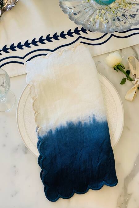White Cotton Scalloped Tie Dye Napkin Set Of 6