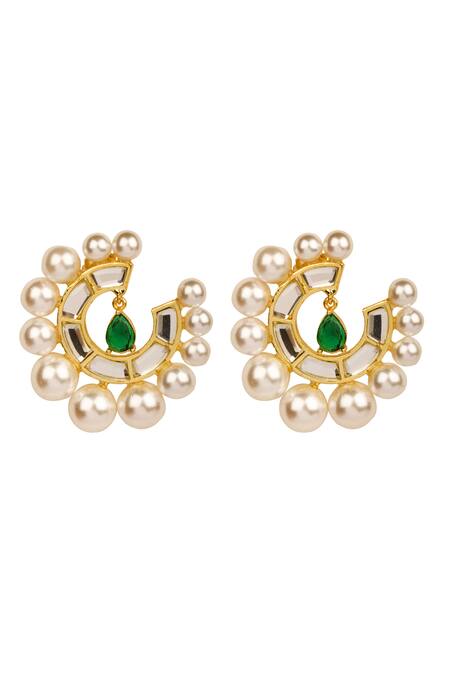 Gold Plated Mirrors, Pearls, Stones Embellished Hoops
