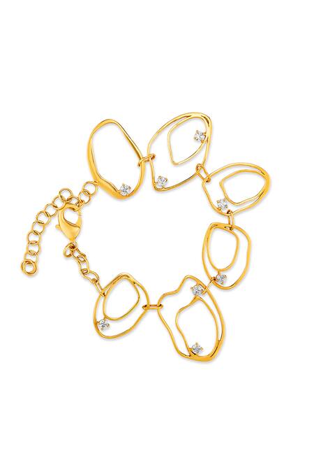 Gold cutwork anklet featuring cubic zirconia and diamond embellishments