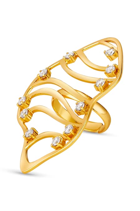 Gold Plated Crystals Cubic Zirconia Swerve Ring