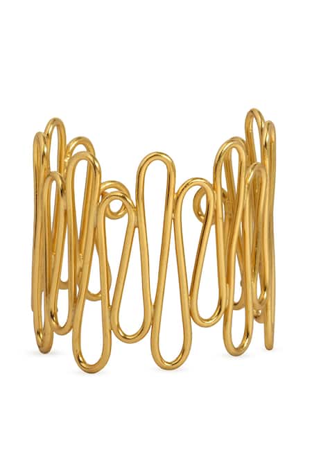 Gold adjustable cuff featuring a unique curved wavy pattern