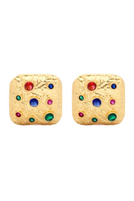 Shop_Mnsh_Gold Plated Crystals, Beads Glass Diamond Studs_Online_at_Aza_Fashions
