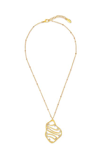 Gold Plated Wave Pendant Necklace With Cz Stones