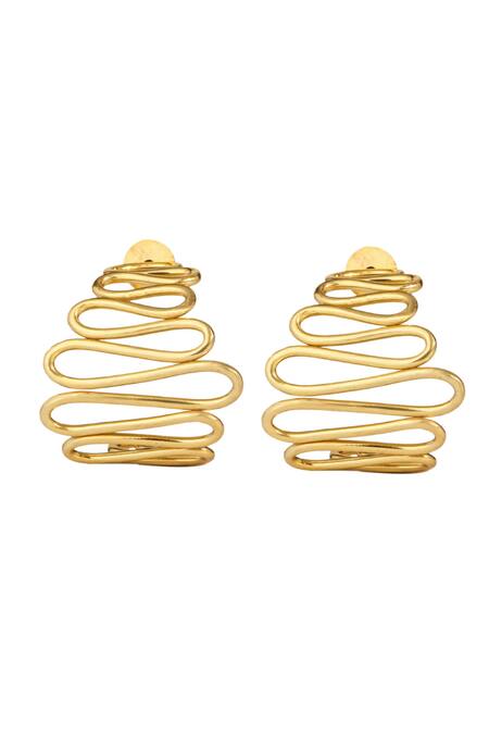 18kt gold plated half hoop earrings featuring a curved wavy pattern