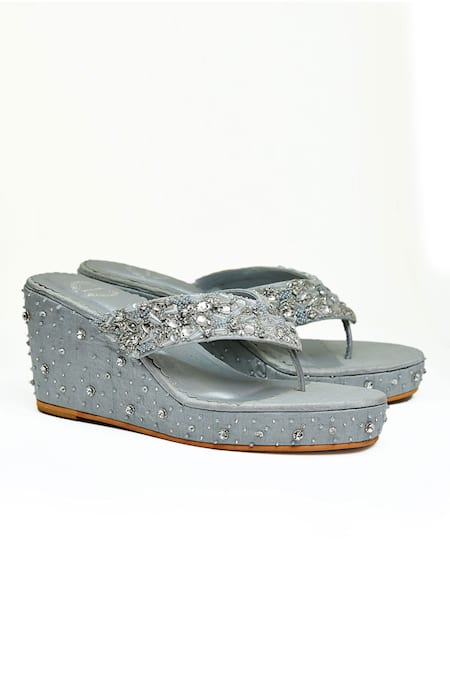 Silver diamond embroidery on upper strap, Soft cushioned lining for comfort, Split toe design for stylish look