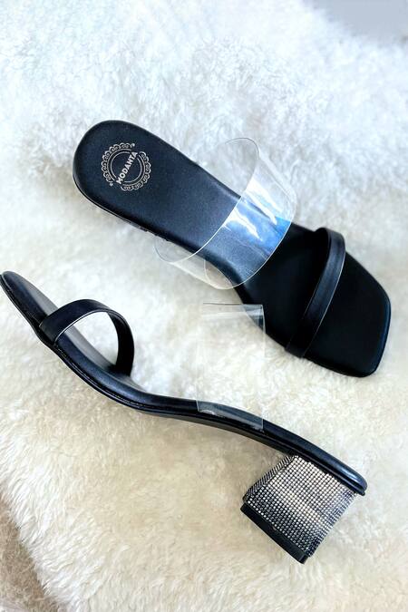 Square toe design for a contemporary look, Transparent strap adds a modern touch, Diamond embellishments for added glamour