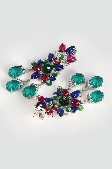 Multi Color Gemstones, Crystals Floral Multicoloured Earrings
