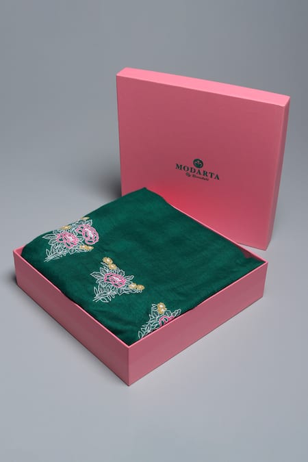 Buy_Modarta_Green Pashmina Placement Embroidered Shawl _at_Aza_Fashions