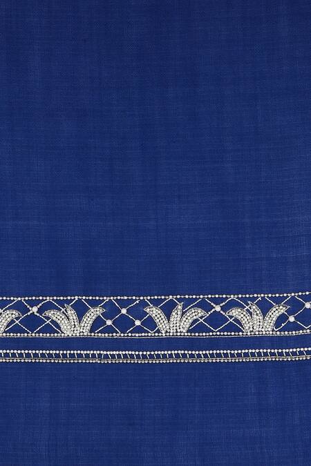 Blue shawl made from 100% fine wool featuring hand-embroidered floral borders adorned with pearls, Swarovski crystals, and stones