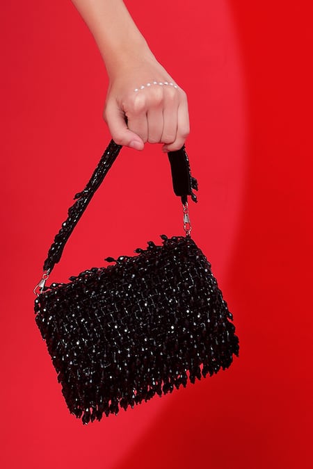 Buy_Modarta_Black Pearls, Crystals And Embellished Mini Handbag _Online_at_Aza_Fashions