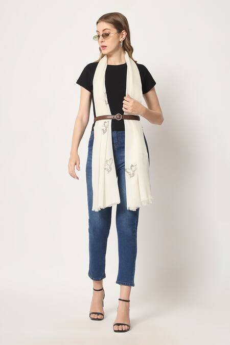 White shawl made from 100% fine wool featuring Swarovski embroidered butterflies