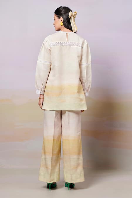 Ivory Linen Printed Landscape Sunrise After Glow Top