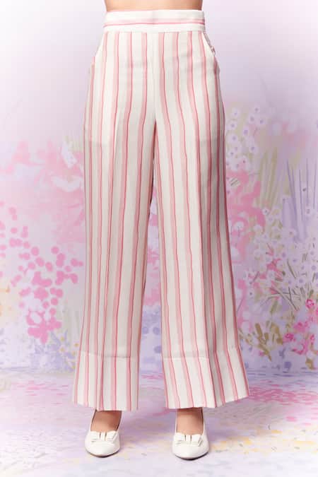Contrast stripe prints, Wide leg design, Pure chanderi silk fabric