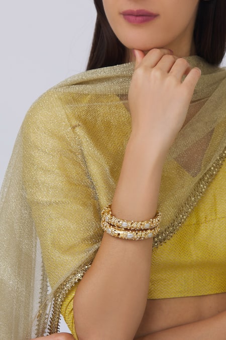 Bead embellishments on the kada, Gold plated finish, Set of 2 bangles
