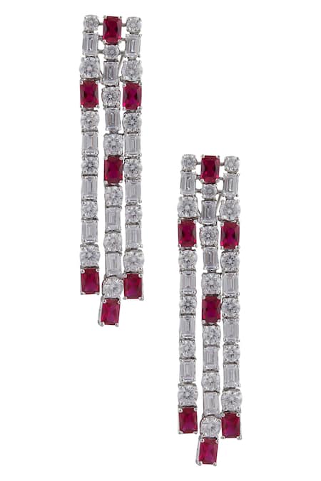 Silver long earrings featuring crystal and stone embellishments