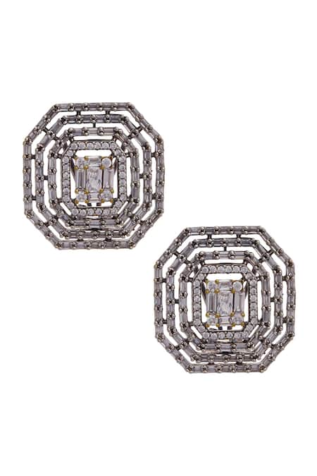 Silver-plated antique geometric studs featuring crystals and faux diamonds