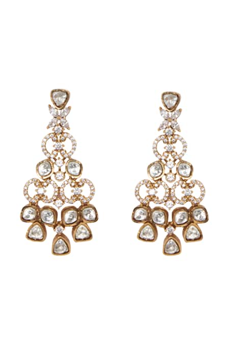 Lobster clasp closure on necklace, Pushback closure on earrings, Cubic zirconia and moissanite stone detailing