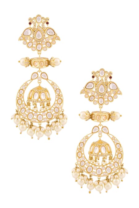 Intricate kundan work with faux diamonds, Elegant pearl drop embellishments