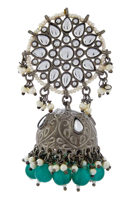 Silver Plated Pearls, Stones Kundan Jhumkas