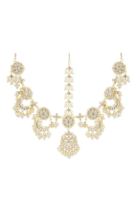 Crescent moon and floral motifs, Encrusted with kundan and pearl clusters