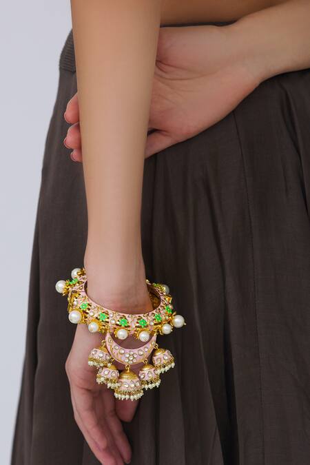 Gold Plated Beads, Semi-precious Stones Meenakari Kada