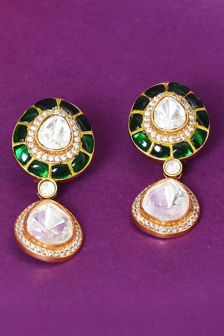 Buy_Moh-Maya By Disha Khatri_Green Diamonds, Stones Polki Embellished Earrings _Online_at_Aza_Fashions