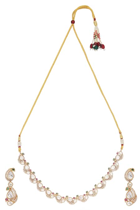 Adjustable drawstring closure for the necklace, Nickel-free composition, Fragile design with intricate stone embellishments