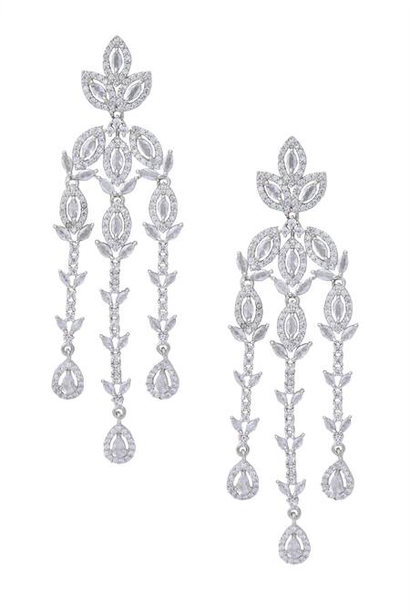 White plated tear-drop earrings featuring floral cutwork design
