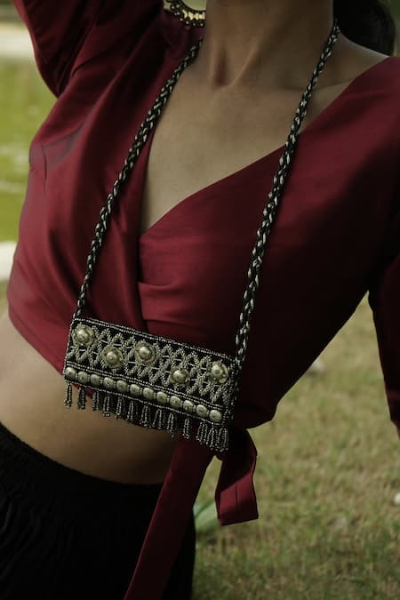 Buy_Moirra_Black Beads And Dabka Handcrafted Long Pendant Necklace _at_Aza_Fashions
