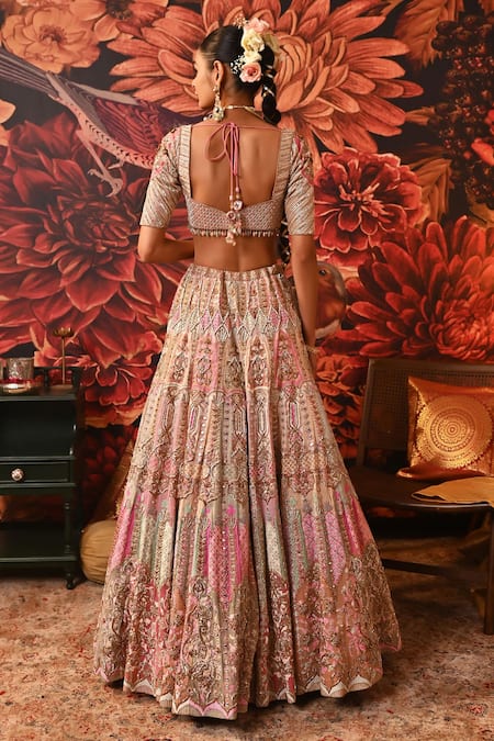 Multi Color Brocade, Organza Embroidery, Aiyana Embellished Bridal Lehenga Set