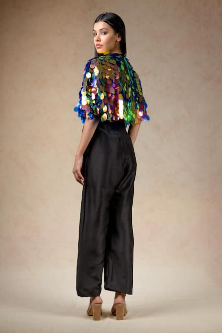 Buy_Thetaa_Multi Color Cotton, Net, Silk, Satin Sequins Embellished Cape With Jumpsuit