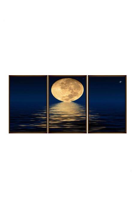 The Art House_Multi Color Canvas Handmade Moon Painting Set Of 3_Online_at_Aza_Fashions