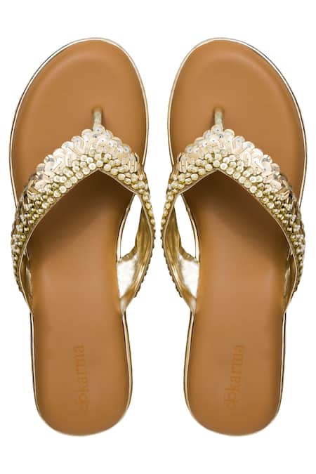 V strap adorned with bead and sequin work, Lightweight design for comfortable wear, Textured platform for added grip