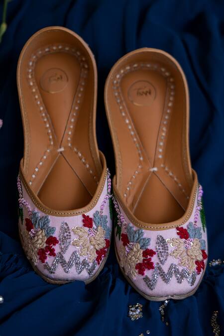 Pink Floral Embroidered Juttis