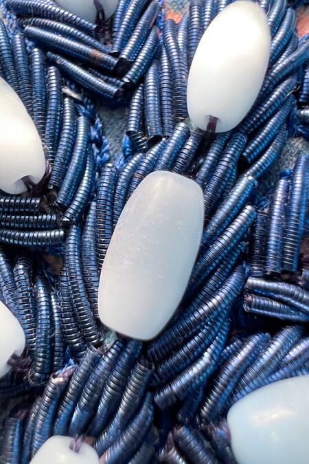 Abstract print with bead and cutdana embroidery
