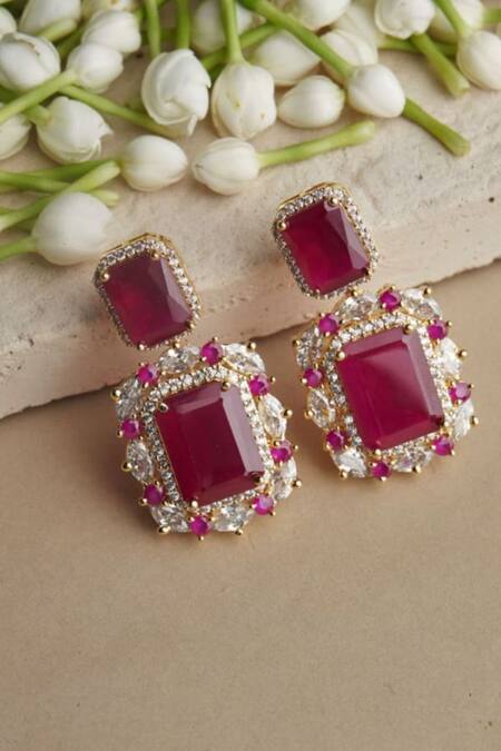 Gold Plated Stones Naz Geometric Embellished Drop Earrings