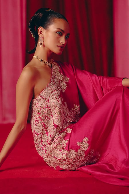 Pink Silk Embroidery One Shoulder Tamira Kaftan Dress