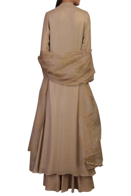 Buy_Priyam Narayan_Grey Embroidery Mandarin Mukaish Work Kurta With Kalidar Palazzos And Dupatta_at_Aza_Fashions