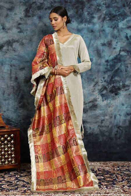 Multi Color Silk Fringe Anokhi Sham Banarasi Dupatta