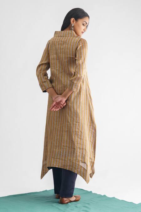 Gold Cotton, Silk Sequins, Beads Nithya Zari Stripe Woven Kurta And Pant Set