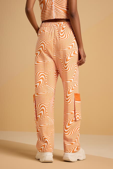 All-over geometric swirl print, Straight fit design, Elasticated waistband with button closure