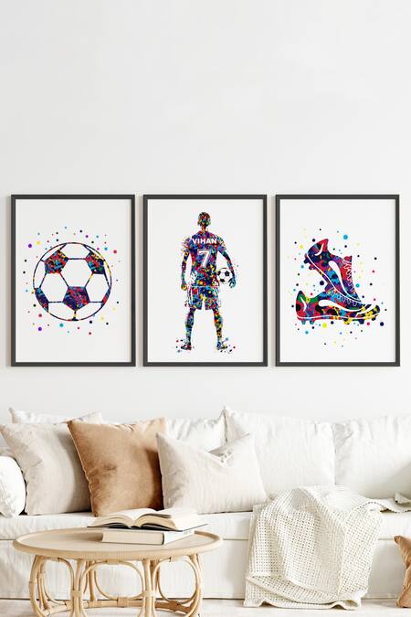 Product Finish: High resolution photo quality on MDF, Dimensions: L x B x H (in cms):, Size A1: 25.2 x 18.1 x 0.5, Size A2: 17.7 x 13 x 0.5, Size A3: 15 x 11 x 0.5, Weight (in kg):, Size A1: 2.7, Size A2: 2.5, Size A3: 1.4, Note:, Only set of 3 frames are being sold, Kindly contact customer service to personalize the name & jersey number, The frame comes with ready to hang with hooks at the back. Position the frames on the wall before hanging them.