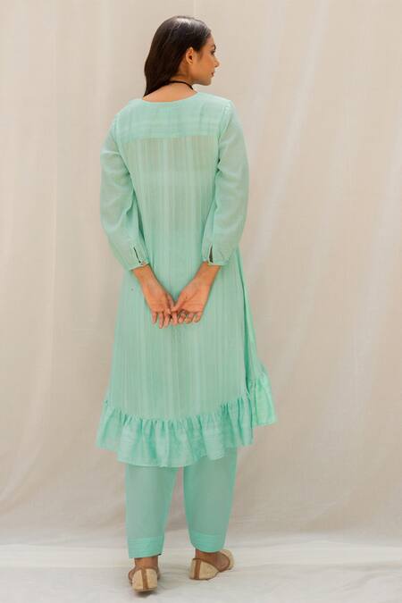 Frill hem kurta >Overlapped neckline >Asymmetric hem >Scalloped hem dupatta