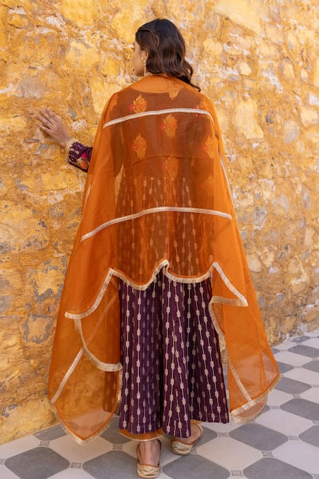 Brown Silk, Viscose, Cotton, Organza Floral Zari Pattern Anarkali Pant Set