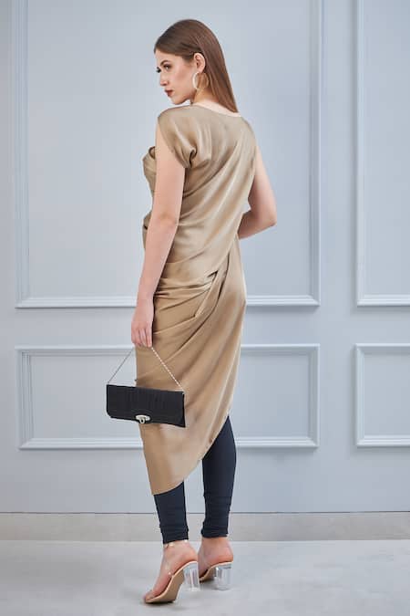 Draped top, Note:Pant and bag carried by the model is not for sale