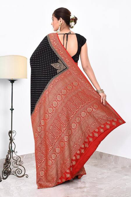 Black Crepe Contrast Butti Detailed Banarasi Saree With Running Blouse