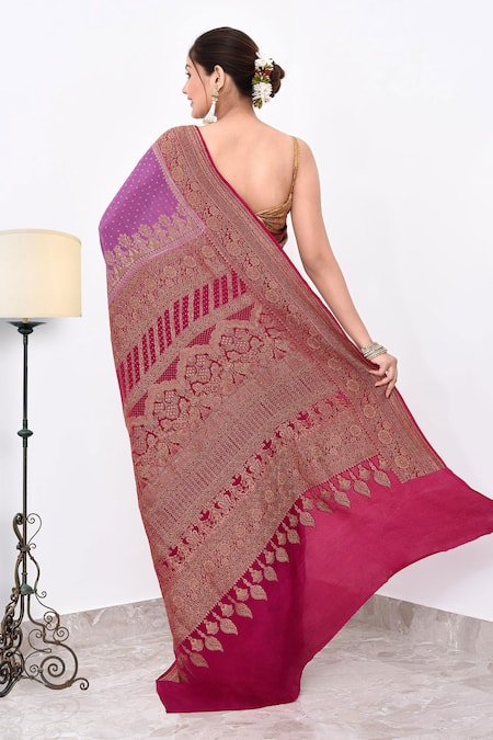 Buy_Naaritva India_Purple Crepe Zari Contrast Hem Detailed Banarasi Saree With Running Blouse _Online_at_Aza_Fashions