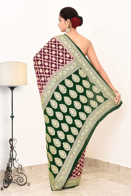 Buy_Naaritva India_Magenta Floral Bloom Pattern Handwoven Banarasi Saree With Running Blouse _Online_at_Aza_Fashions