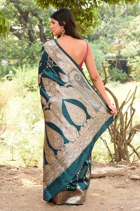 Buy_Naaritva India_Green Zari Handwoven Banarasi Saree With Running Blouse